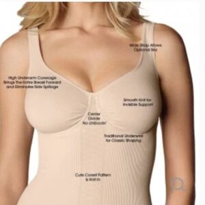 Sassybax Trimming Bra NWOT The underwire torso trim longlime bra offers the same back and torso smoothing features as our original Torso Trim but we've added an underwire to provide extra support for fuller figured gals. Comfortable Seamless Design Makes Back Fat Go Away. Smooth Comfortable Control.Won't Bind or Restrict Movement. Designed for Comfort. Seam-Free Microfiber.Wide Strap Doesn't Dig In.Flexible Underwire. Midriff Slimming Shapewear. From Hipbone to Bra Line.Tummy Trimming Compression.Bannish muffin top! High Underarm Coverage. Eliminates Spillage on the Sides. Keeps You Looking Slimmer.
