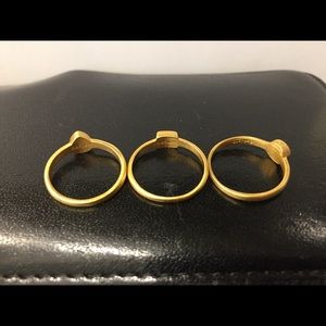 Three gold plated stack rings size 6, from Sataya, never worn