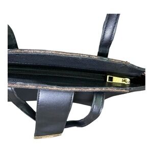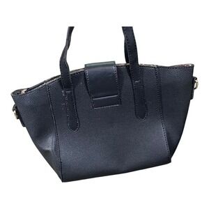 Satchel Handbag Black Faux Leather Gold Accent Small Purse