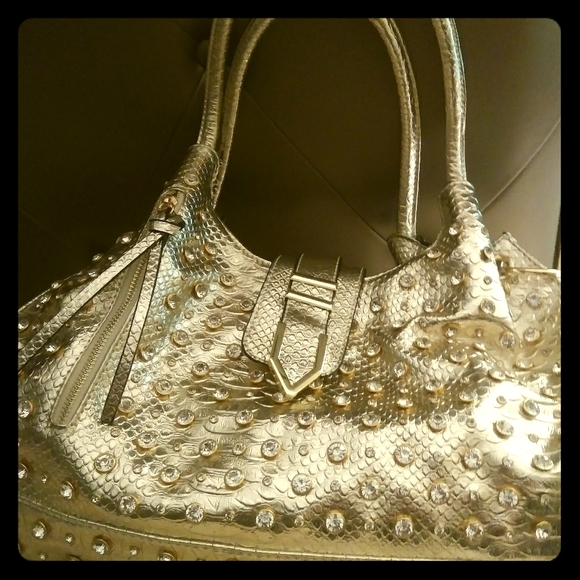 "New " Tracy Lynn Gold Rhinestone Studded Purse. 3 inside compartments, 1 with zipper