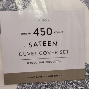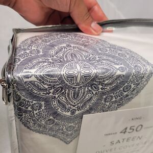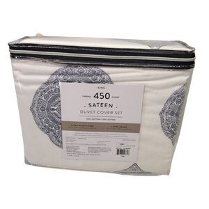Brand New, Sateen King 450 Thread Count Cotton Duvet Cover Set Blue Medallion