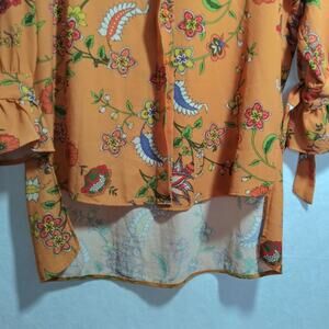 Sateen Life Orange Paisley Print Tie Cuff Button Up High Low Retro Size Small