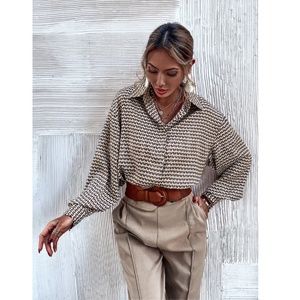 All Over Print Button Down Shirt Oversized Tan Beige Brown Multicolor
