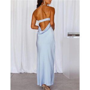 Elegant strapless maxi dress,This features a folded bust detail, Ruched elastic on back , stunning open back feature,Gel tape along the bust and a Invisible zip on side,With an elegant yet simplistic design, the Realtix will be you go-to for formal occasions and special events