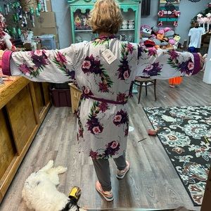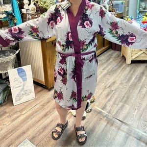Satin bathrobe inspired by Frida Kahlo, so pretty and feels great on the skin. One Size fits All.