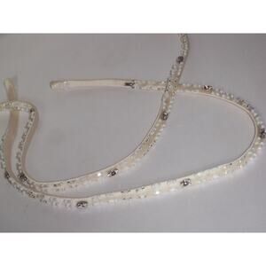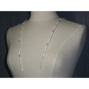 Beautiful rhinestone and beaded satin shoulder straps. They have 15 inches of beading and 2 1/2 inch extensions on each side. They also have hook and plastic snaps sewn on. You can adjust your length to what ever you need.