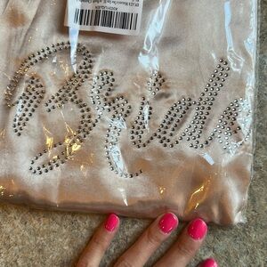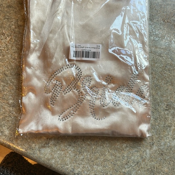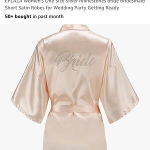Elegant satin robe with 'Bride' in rhinestones. Perfect for special occasions.