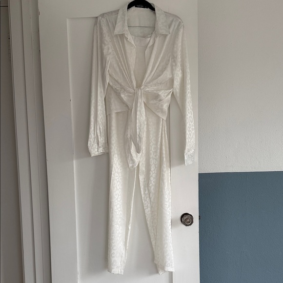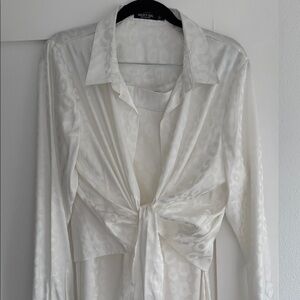 Elegant ivory blouse with tie-front detail. Ideal for chic outings. Top is a size 8 and bottoms are a size 6