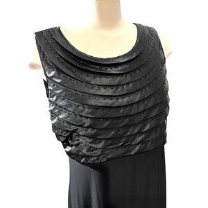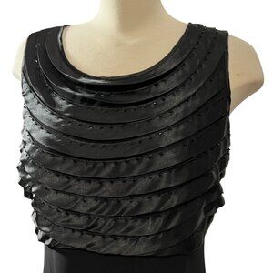 This is a Vintage Satin Chic Bouncy Black Cocktail Dress by Coldwater Creek. This gorgeous Sleeveless dress has a slinky bottom with a satin layered and beautifully beaded bodice with a gorgeous swoop.