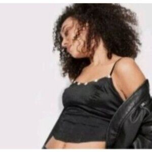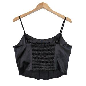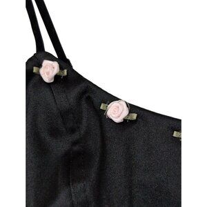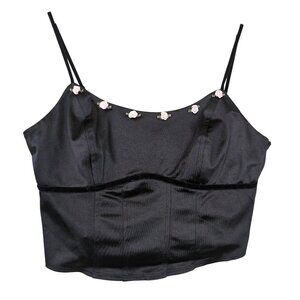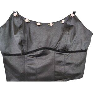 Satin Corset Crop Top M Black Rosettes Y2K Fairy Grunge Coquette Velvet Trim