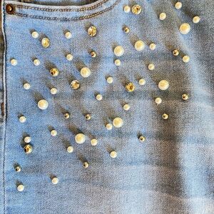 Satin Doll Pearl & Gem Embellished Denim Skirt – Medium