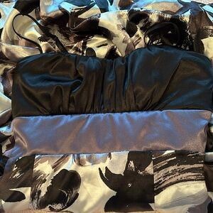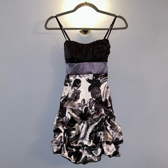 Satin dress with adjustable straps. Color is black, gray, pearl. Like brand new. Only worn twice.