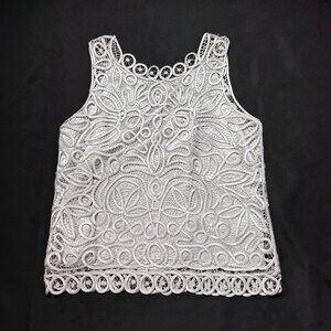 Satin Embroidered Over Mesh Jacket & Lined Sleeveless blouse. Large Silver
