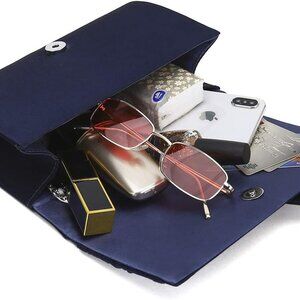 Product details Fabric type Shimmering satin fabric Origin Imported Closure type Flap with magnetic snap Lining Satin About this item ELEGANT BOW DESIGN - Propel your look this evening with this shimmering bow evening clutch, crafted in shimmering satin fabric, the oversized bow makes it a festive pick to easily match many formal outfits for wedding, party, prom and any formal events. Magnet snap flap closure Satin lining and interior slip pocket Size: W8-5/8 x H5-1/4 x D2 inches Detachable chain strap, drops 21.5 inches Satin lining and 1 interior slip pocket. See more About this item