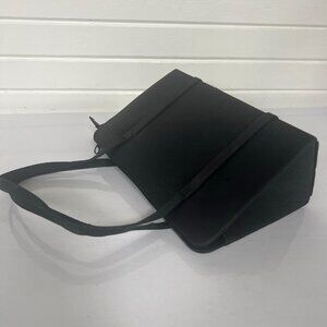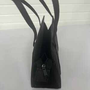 Gently used La Regale satin evening bag with zippered closure and satin handles. Bag dimensions: 7' wide x 5" high.
