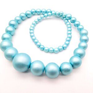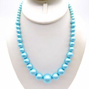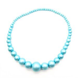 Satin Finish Blue Bead Choker, Vintage Stretch Graduated Strand Necklace