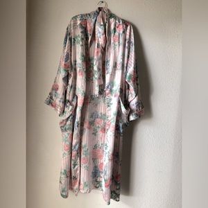 Pastel J.O. Intimates brand satin floral robe with stripped background. Perfect for poolside fun, or the bedroom. In ✨excellent condition✨ with matching waist tie.