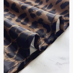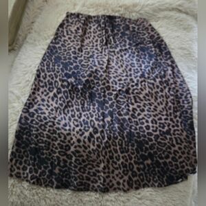 This elegant midi skirt features a striking black and brown leopard print, perfect for a night out or cocktail event. The lightweight fabric and flowing design offer graceful movement, making it a standout piece in any wardrobe. Its midi length adds a touch of sophistication to your ensemble.