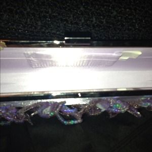 NWOT. Never been used. I bought this clutch to match a dress and ended up not wearing either. The inside has one credit card slot for ID or credit card. The chain also folds into the clutch. So you can use the clutch with or without the chain. The chain has a 4" drop.