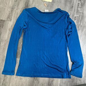 Satin Long Sleeve Crewneck Shirt Blue Size Medium NWT