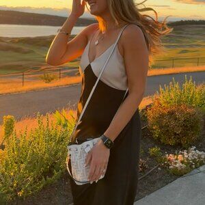 Classy and elegant satin maxi dress from Nordstrom. Worn once for a wedding. Top portion is champagne color, with black body. Great condition!
