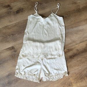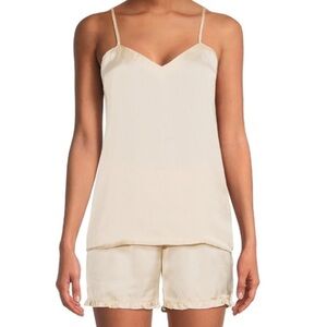 Lissome Women's Satin V-Neck Tank Top and Ruffle Shorts, 2-Piece Set ruffle high rise