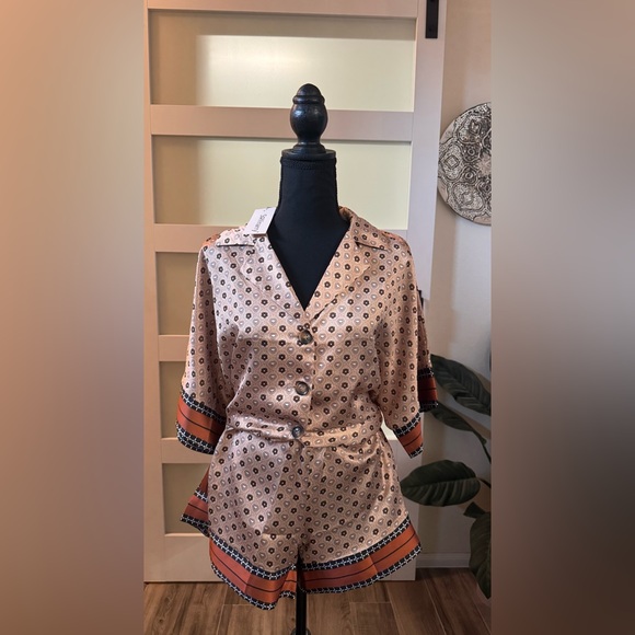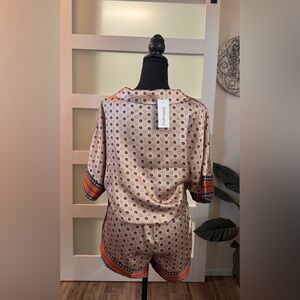 Satin Patterned Button-Up Short Set