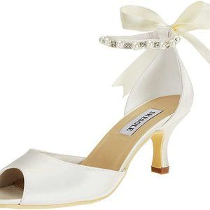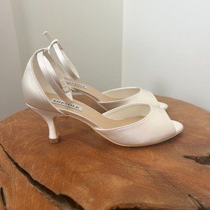 Satin Peep Toe Heels, Perfect Bridal Shoe with Ankle Strap