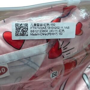 Satin Pink Heart Lollipop Printed Pajama Set Feather Cuffs Girl Kids 150