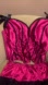 Cacique elegant satin lingerie set in vibrant pink with black lace accents. Corset and garter size 18/20. Lane Bryant Cacique