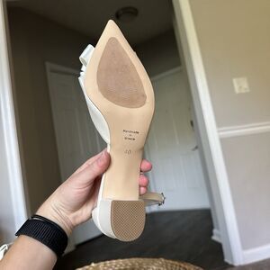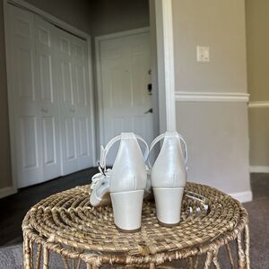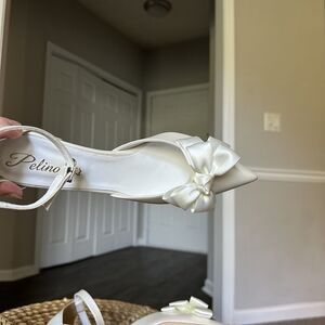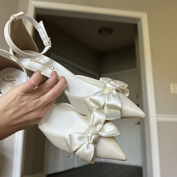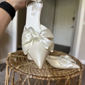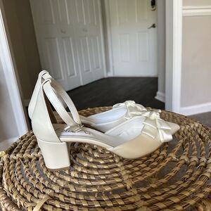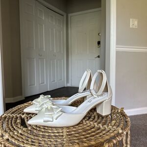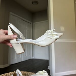 Perfect Bridal satin bow adorned block heel sandals! Retails $235