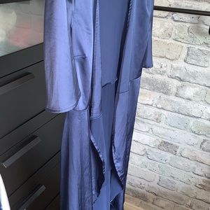 This satin robe is flowy and goes well as an intimate piece, as a swimwear coverup, or over an outfit. I personally love this piece over an indie outfit for music festivals! Tie attached. High-low cut. Worn twice.