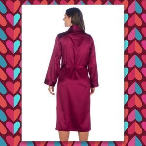 Beautiful satin robe in burgundy or wine red. Comes in a gift box and designer's packaging, ready to give as a gift. Makes sexy lingerie too. Silky, lightweight exterior with a very soft terry cotton feel inside makes for a cozy & luxurious robe. Additional colors available separate listings. Excellent new with tags condition, directly from our LA designer in the original designer's gift box as shown. Open front w/ decorative tie or sash, shawl collar, 2 pockets. High quality fabric made with 96% polyester & 4% spandex. See size guide pic for measurements. Medium & XL available, Small & Large SOLD OUT in this color. Small-XL available in separate listings. Feels like smooth and luxurious satin on the outside while feeling like soft brushed cotton on the inside. Cozy and comfortable without sacrificing style. Comes packaged in the gift box as shown and wrapped on the exterior with tissue paper. If this is for a gift please let us know and we'll add ribbon and a blank gift tag so it is ready to give to your loved one.