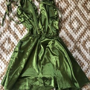 Gorgeous satin romper with open back. Relatively short, but still a very classy look. Bought from a fellow posher, so not sure the brand but it is good quality and in great condition. Could fit a small-large, but would best fit a medium.