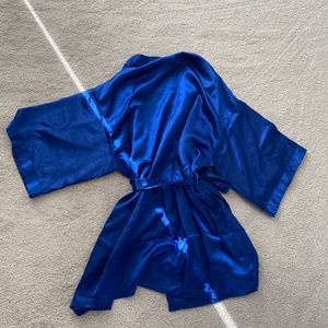 Blue satin short robe. Has been worn before but still in great condition.