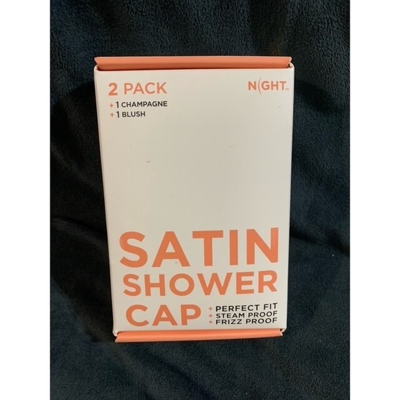 Satin Shower Cap in Champagne & Blush Frizz Steam Proof Perfect Fit 2 Pack.