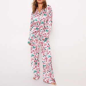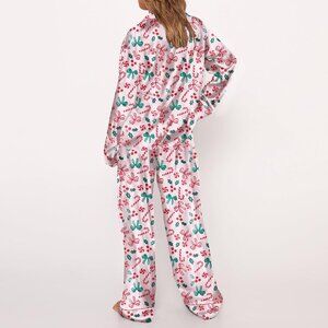 Satin Silk Pajama Set Button Up Shirt Pants Women's Sleepwear