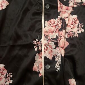 Satin Sleep Shirt - Button Down Floral Top