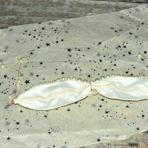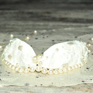 Sew On Embellished Pearls on Ivory White Satin Soft Fabric Faux White Vegan Pearl Keshi irregular Pearls & Beads Hair Band cover-up