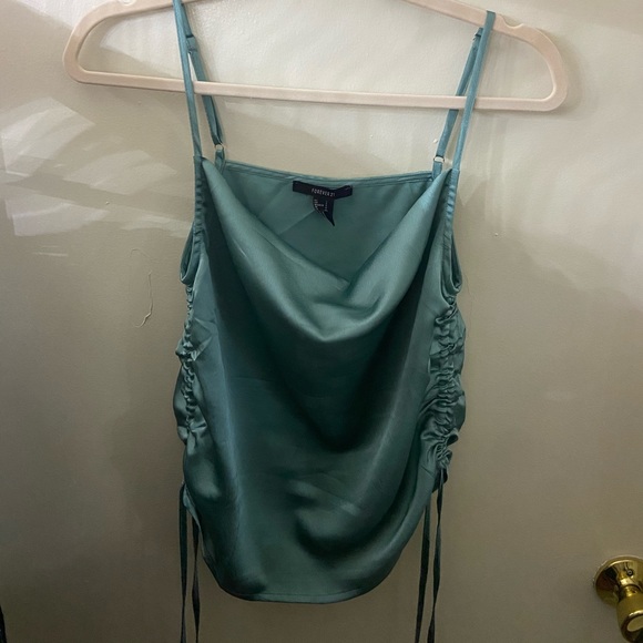 Aqua blue satin tank Never worn Size small Forever 21