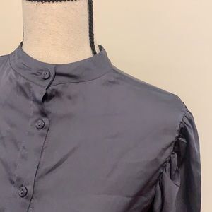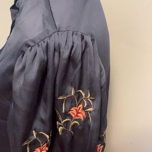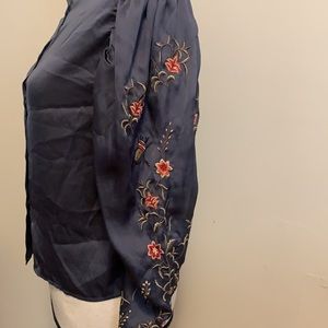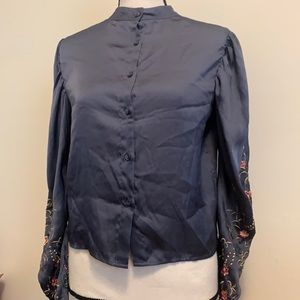 Satin button up blouse. Puff and embroidered sleeve. Fits like a small. From H&M. Never worn