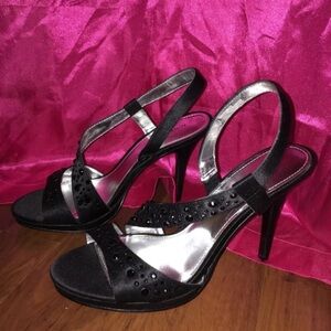 Formal black satin embellished heels. Perfect for weddings, prom, graduation etc.