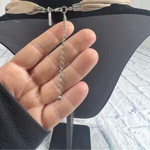 Beautiful satin tope necklace. This is a double tiered knotted necklace. There are beads that are knotted between each bead to create a double tiered necklace design. This is in preowned condition and comes from a smoke free home and will be mailed same business day