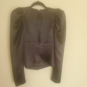 Satin puff sleeve express blouse size S low V-neck