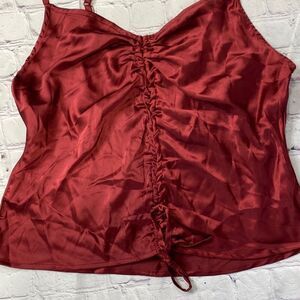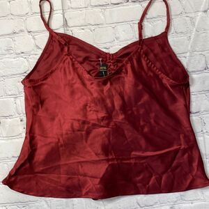 Satin Holiday Cropped Camisole Cinched Sexy Dressy Top Red Large
