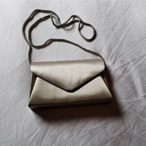 Satin elegant purse with a warm silver cream green color that can suit any outfitđ¤.