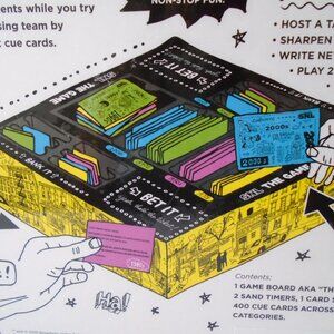 2 Sand Timers, 1 Card Sleeve, 400 cue cards across 6 activity categories.
