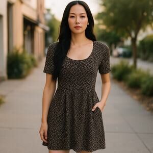 Saturday Sunday Anthropologie Black White Gray Knit Dress Size Medium Scoop Neck