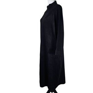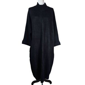 black knit dress, midi dress, mock neck dress, long sleeve dress, relaxed fit dress, anthropologie dress, cozy knit dress, acrylic nylon dress, Saturday/Sunday black, winter dress, casual black dress, chic knitwear, comfortable dress, gothic, goth, boho, lagenlook, lagom, Scandi, Scandinavian, oversized, drapey, relaxed fit, casual, office, staple, timeless, everyday, comfy, stretch knit