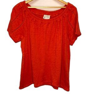 Saturday Sunday Anthropologie Felicia Orange Red SS Boho Peasant Top Size L